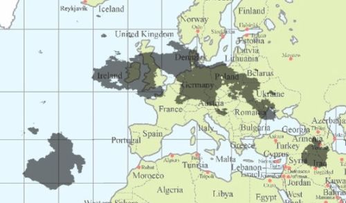 The limits of all the islands is a box between 28.5° North and 63.5° North, and 8° West and 83° East.